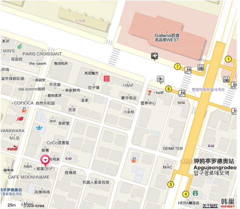 地鐵:狎鷗亭羅德奧站 6號出口 直走 看到7-11後左轉 進入巷子內,