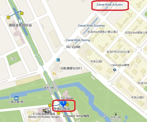 地鐵:仁川一號線 中央公園站 4號出口 出來直走 右轉再直走 即達 NC CUBE CANAL WALK